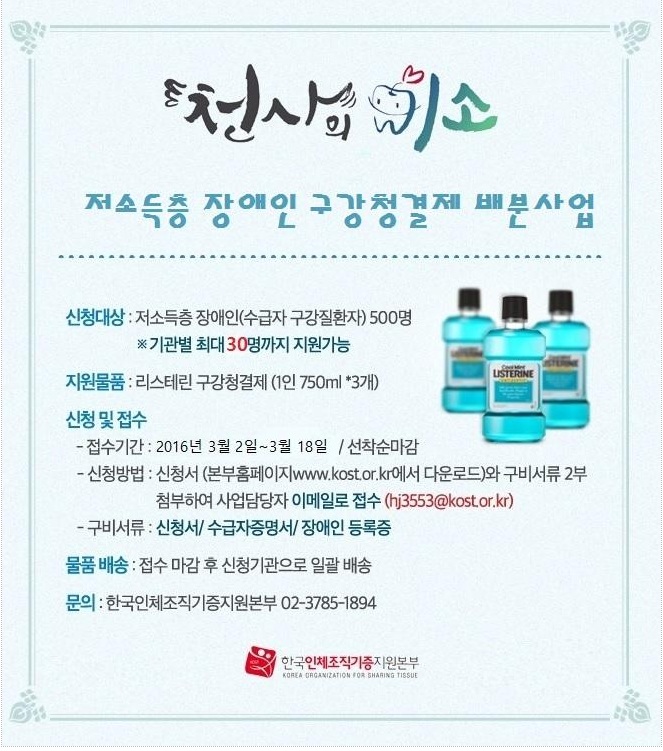 | 이전글 | 2016 리프레쉬투어 참여가정 모집 안내/ 이랜드 복지재단 | 2016-02-29 |