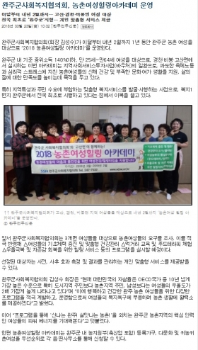<2018 완주군사회복지협의회 제공인력 1분기,2분기 간담회 개최>⊙일시:2018년 1월 25일, 5월 30일